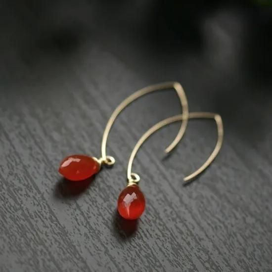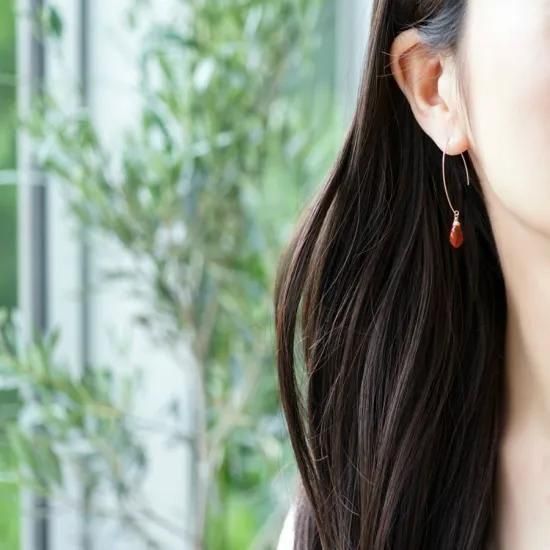 カーネリアンの木の実のような愛らしさとシャープさを合わせ持ったピアスですね。