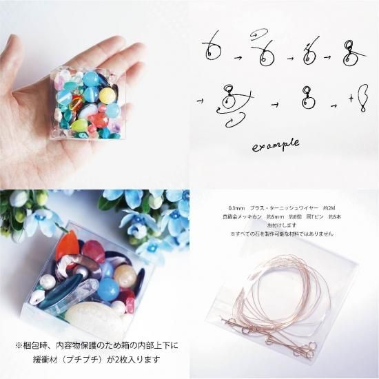 キレイな石がたくさんでときめきました!そのままチェーンを通せば使えるような、ワイヤーがついた石も入っていて、アウトレットの3粒ネックレスやイヤリングに通して使っています。ワイヤーがついていないものはガラスの小瓶に入れて眺めて癒されています。また買いたいお品です。