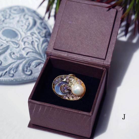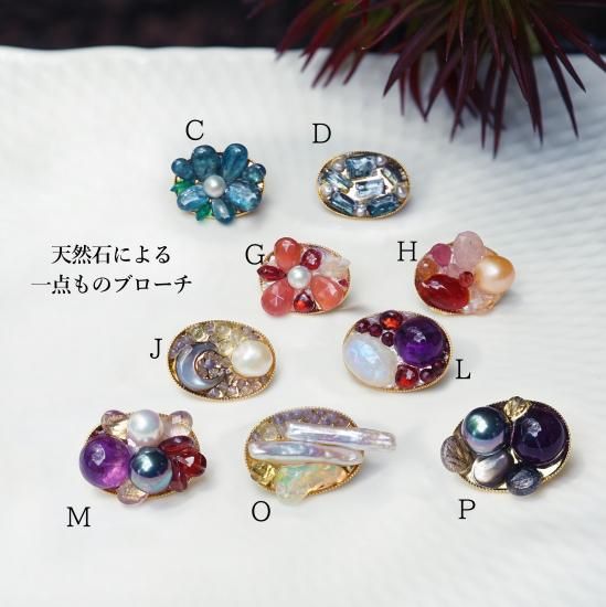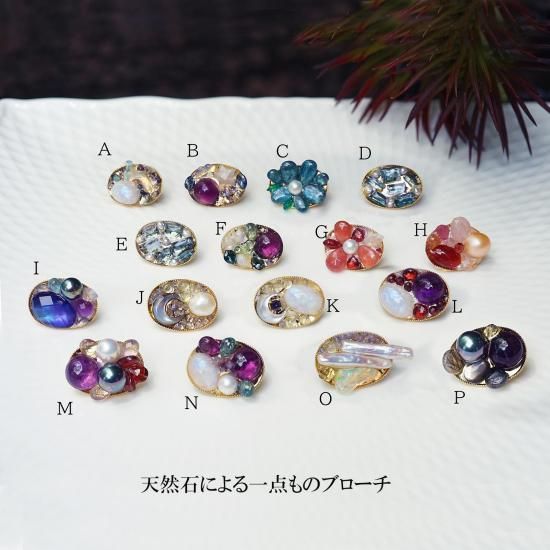 身に着けられる一点もののブローチは、お呼ばれやお祝いの席にも。