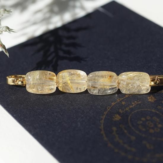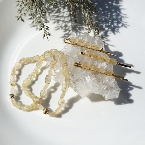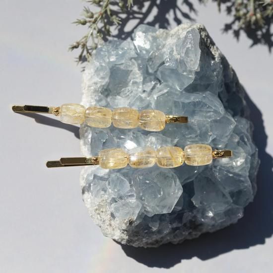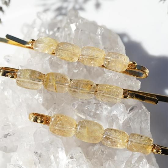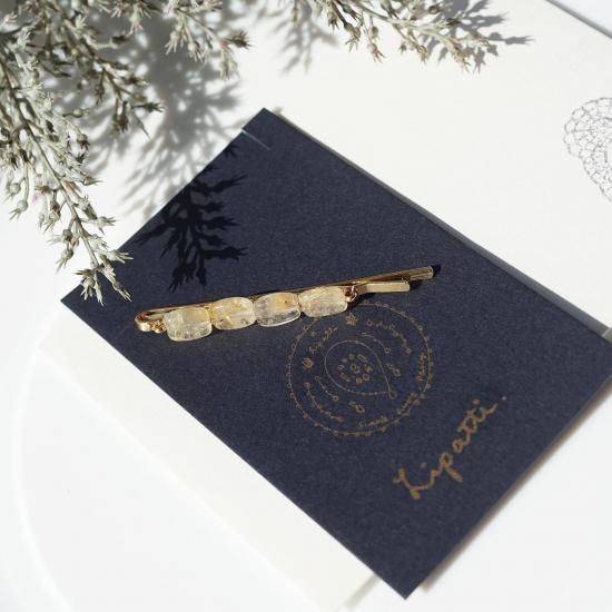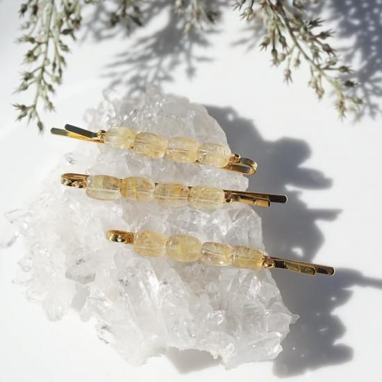 ルチルクォーツの連なるジュエルヘアピン 〜金の麦畑