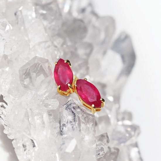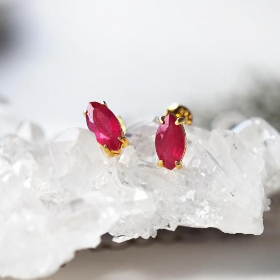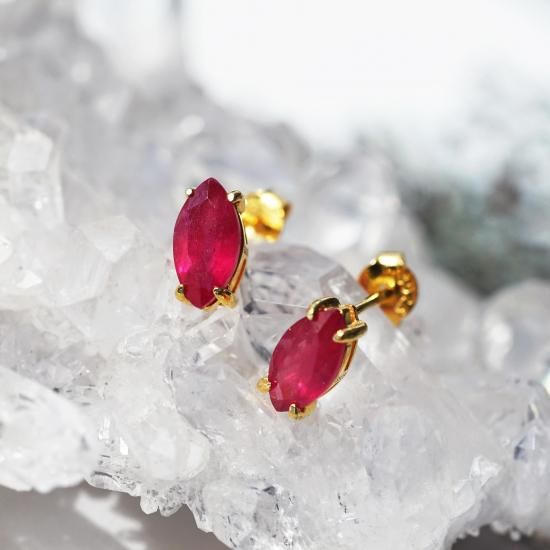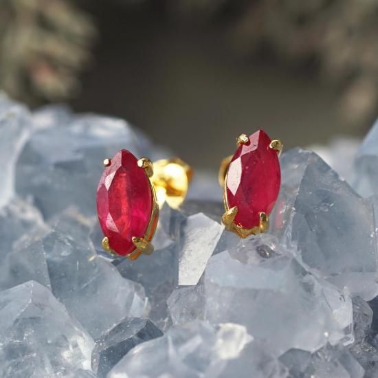 ルビーは赤外線〜紫外線まで、広範囲の電磁波に反応するため、どのような光を受けてもその真紅の輝きを光らせます。さらに硬度も高く物質としての安定性が高いことから、光学レンズにも使用されます。ルビーの産地や状態にもよりますが紫外線に対して蛍光する特性があるものもあり、ルビーの赤には他の石の赤と違って、独特の「熱」感を感じる方が多いです(あくまで印象です)。石からじわりと照り返してくるような独特の赤は、「情熱」の石言葉通り、何か守ってくれるような、石でありながら生命の力のようなものを感じる独特の視覚的効果があるようです。
