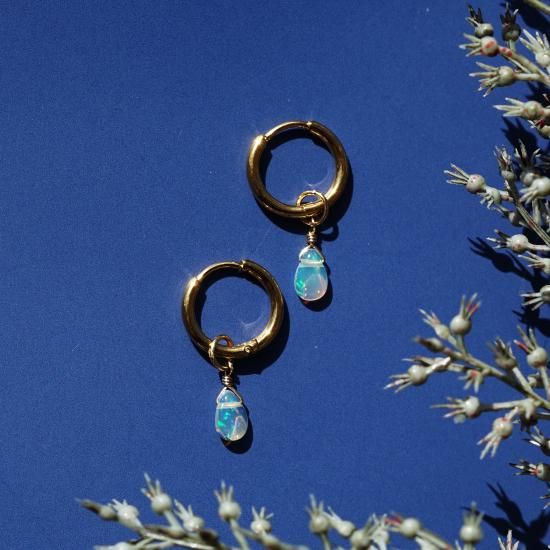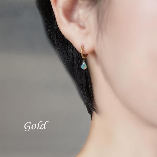 エチオピア産オパールのペアシェイプ一粒ピアス・サージカルステンレス 〜極光(きょっこう)