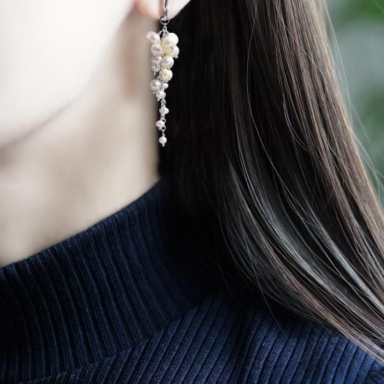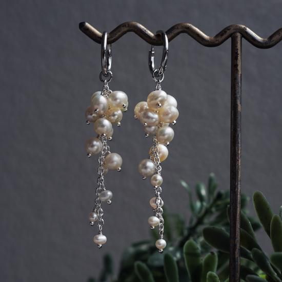 清廉な白藤の花を、淡水真珠を紡いで表現しました。