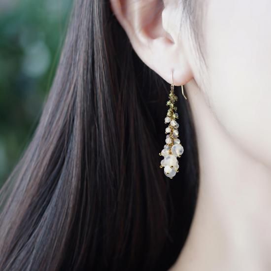 先端の柔らかな蕾の部分は、市場でも極小のペリドットに最も細かな極上カットが施されたものを使用して製作しています。