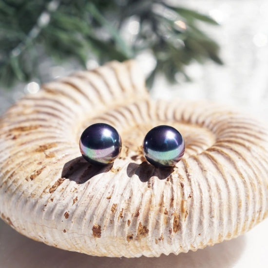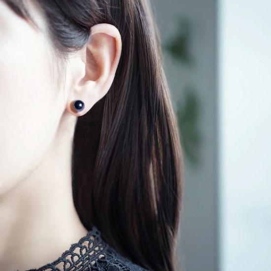 貝パールのピーコックブラックを一粒スタッドピアスに。