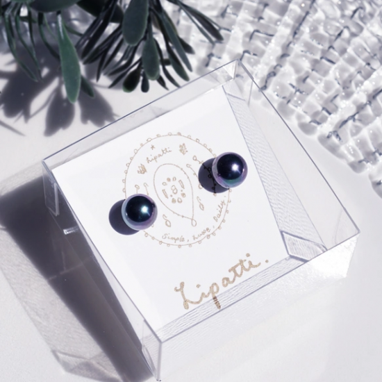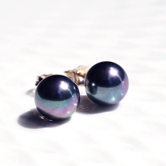 こちらはタヒチ産の黒真珠のような色を再現すべく、本物の真珠の粉から何度もコーティング及び研磨して仕上げた高級素材です。